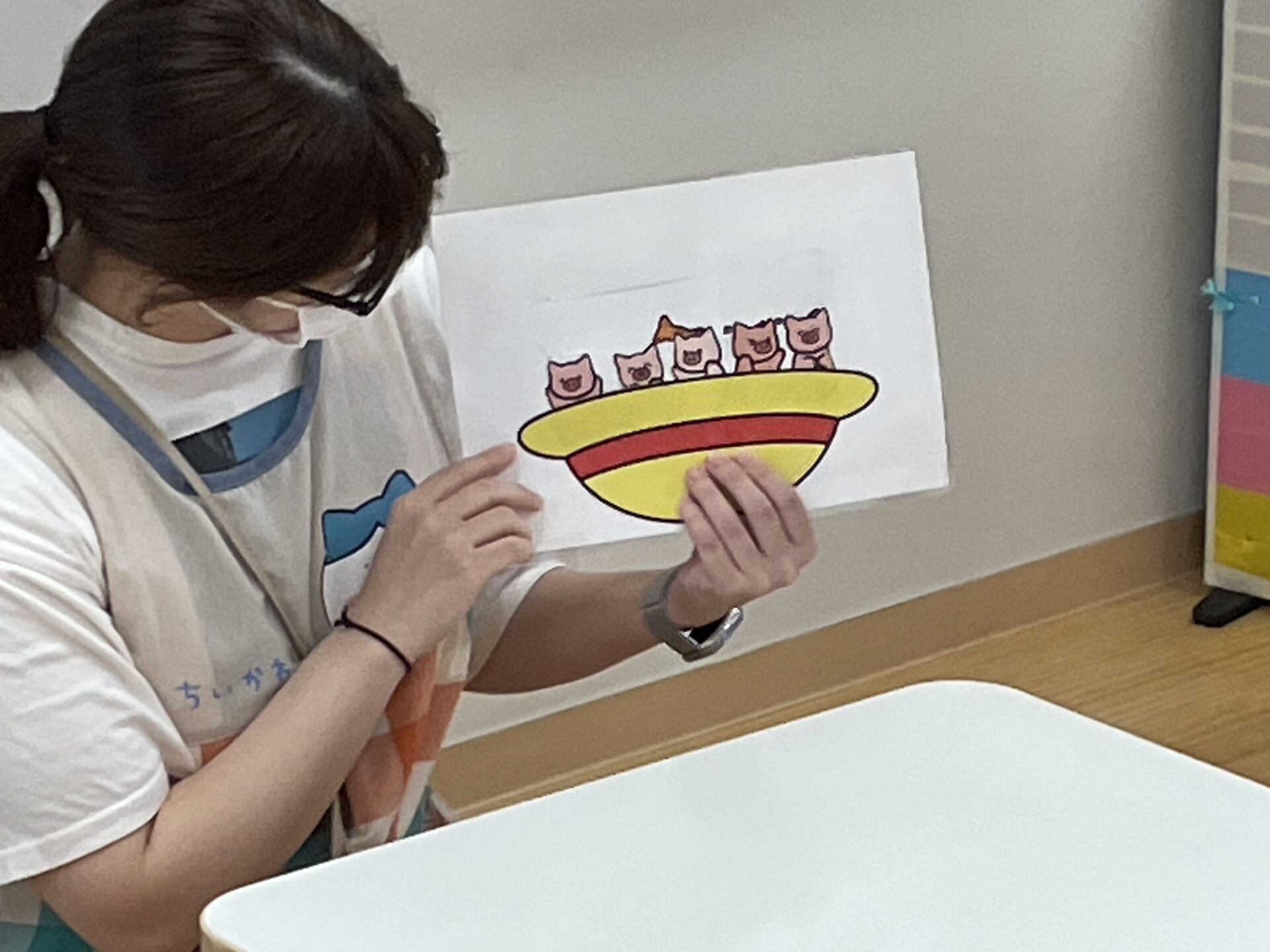 まずは保育者の出し物 ラミネートシアターがはじまりました。