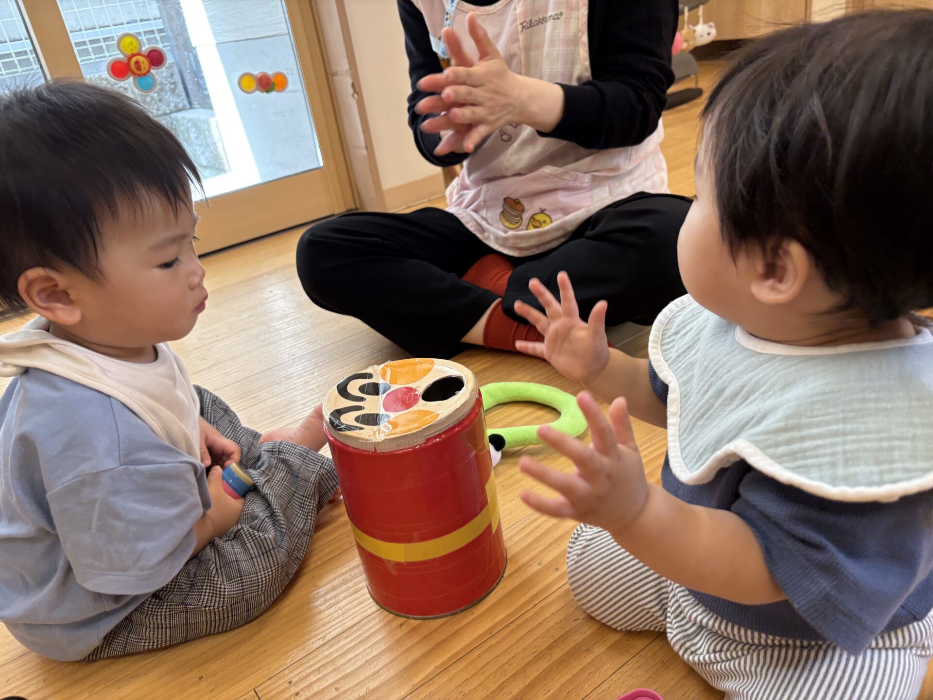 まだおしゃべりはできませんが、きっと子どもたち同士には伝わる何かがあるのではないかと思う保育者たちです😊