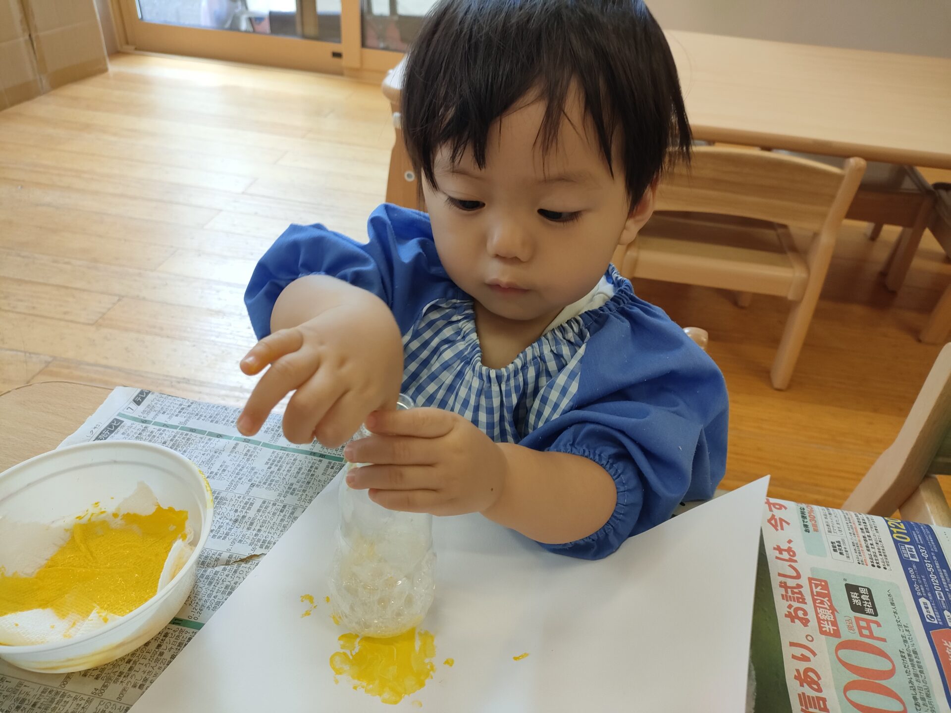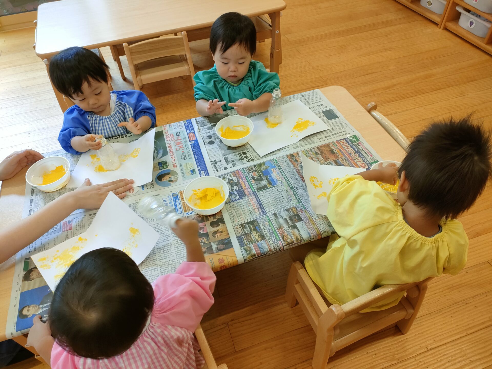 次の日は絵の具のスタンプを楽しみました。