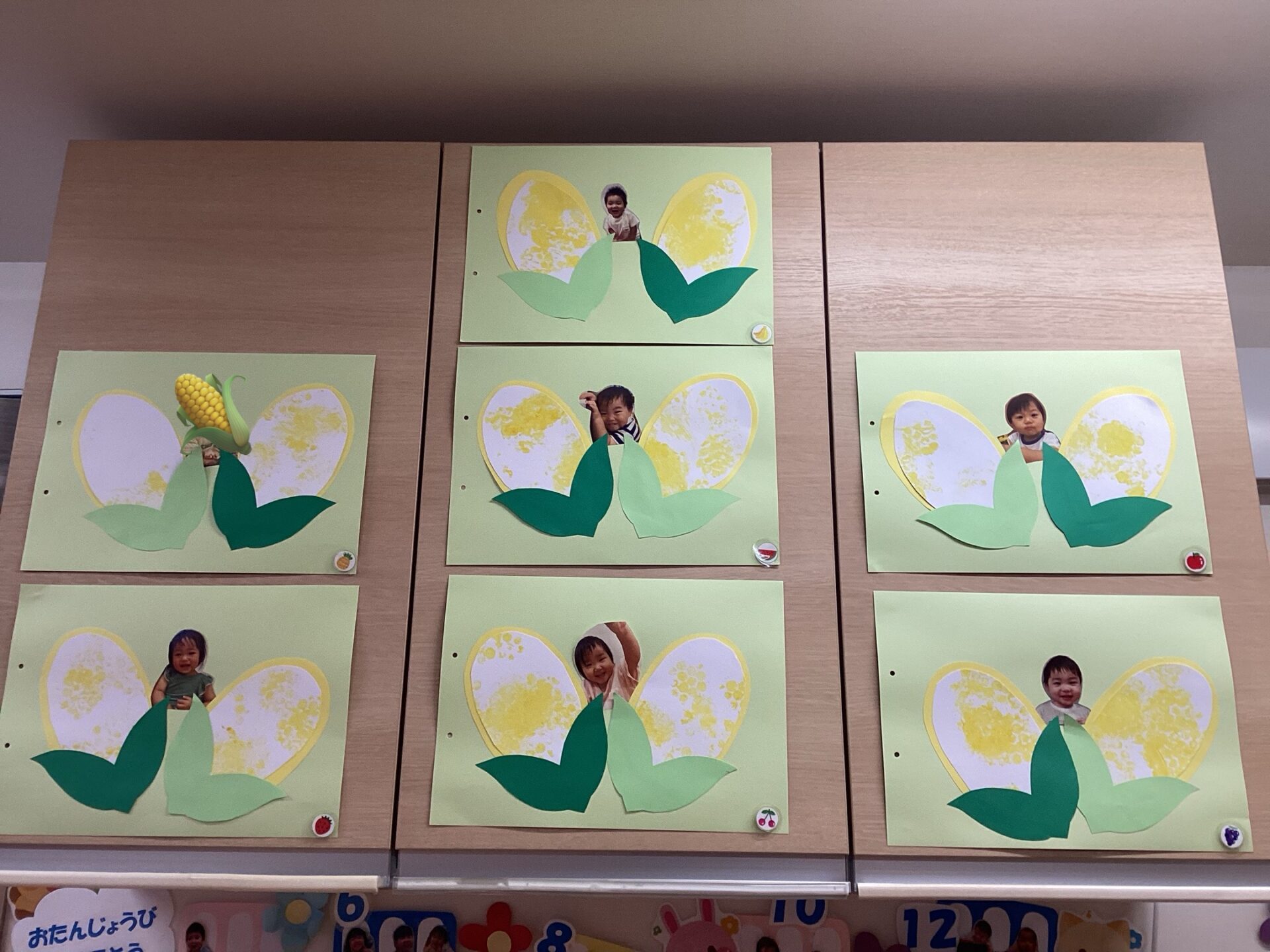 たくさんスタンプした物でとうもろこしを表現し、完成😊