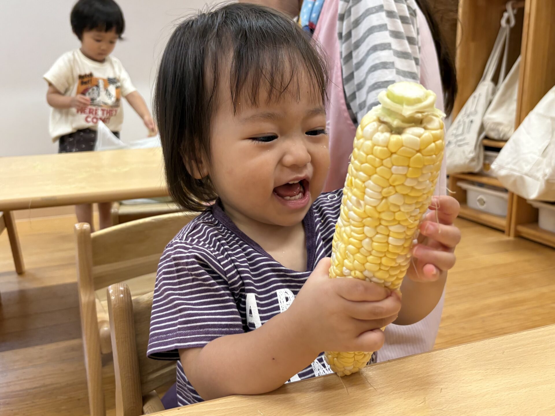 その日のおやつにとうもろこしが出ると、パクパク美味しそうに食べていましたよ😁