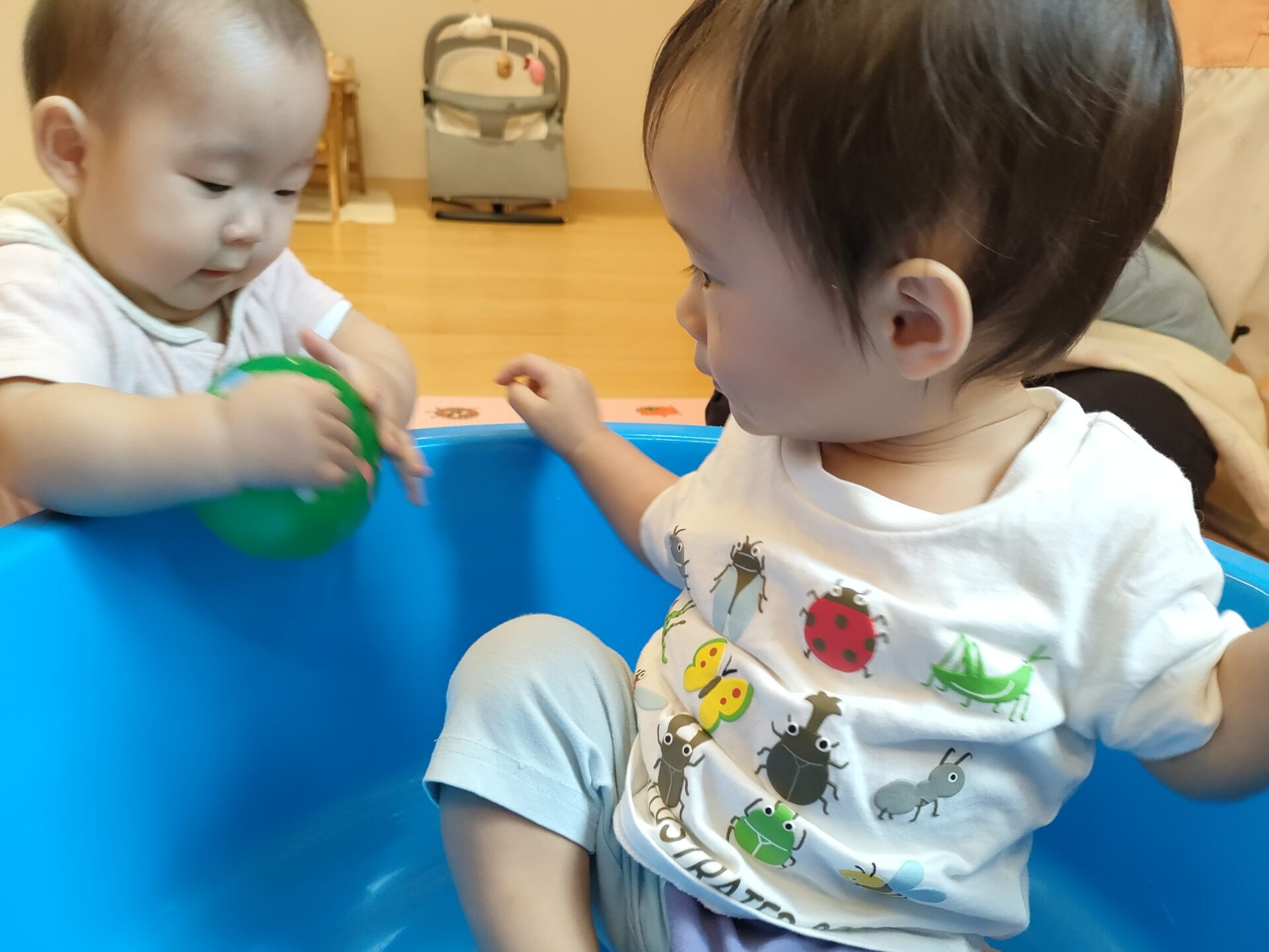 水遊びを思い出したのか、たらいの中に入って満足そうなお友だちもいましたよ😁