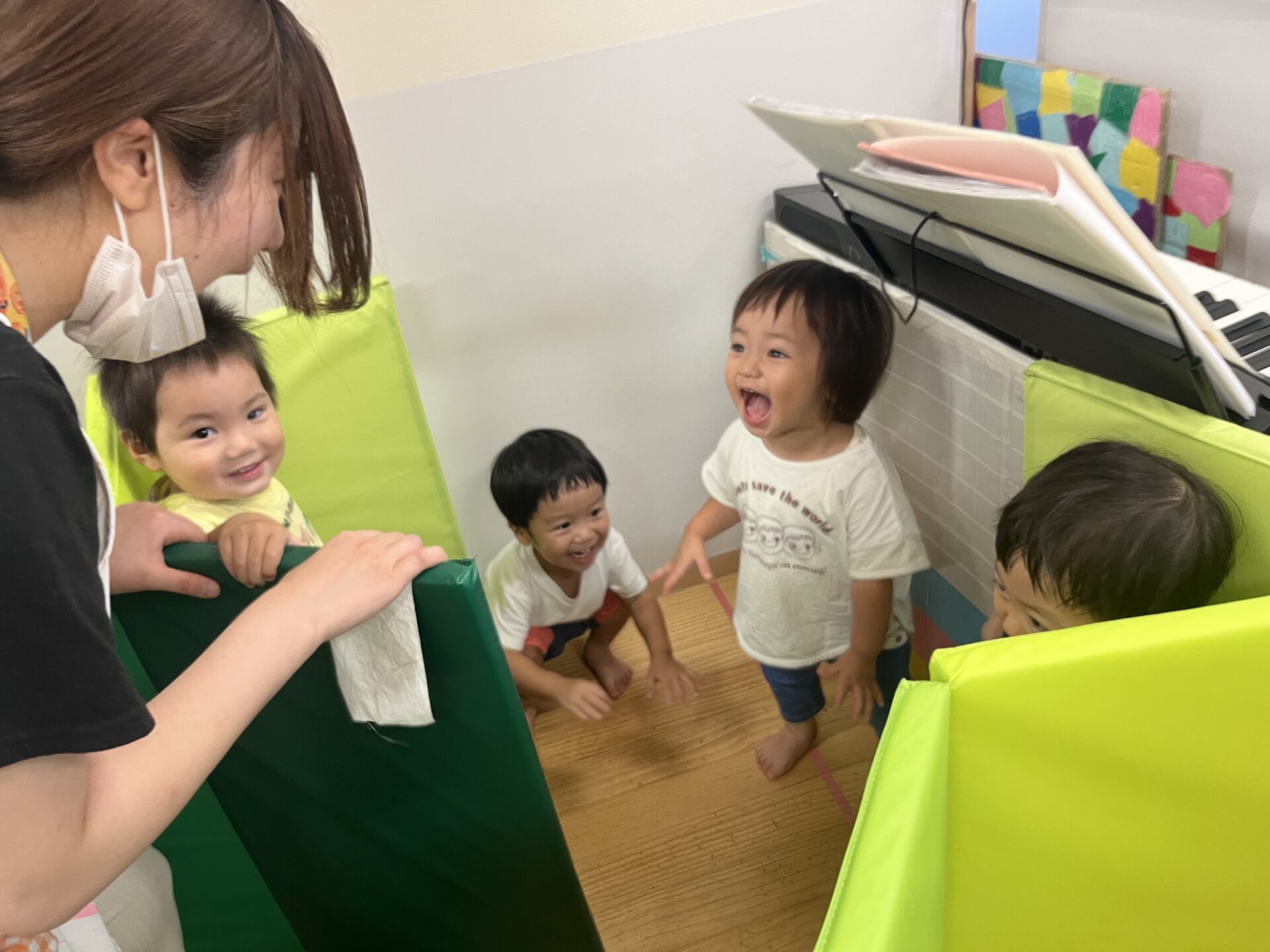 高月齢児さんは言葉も増えてきたので、「何してるの〜?」と話しかける子もいます。