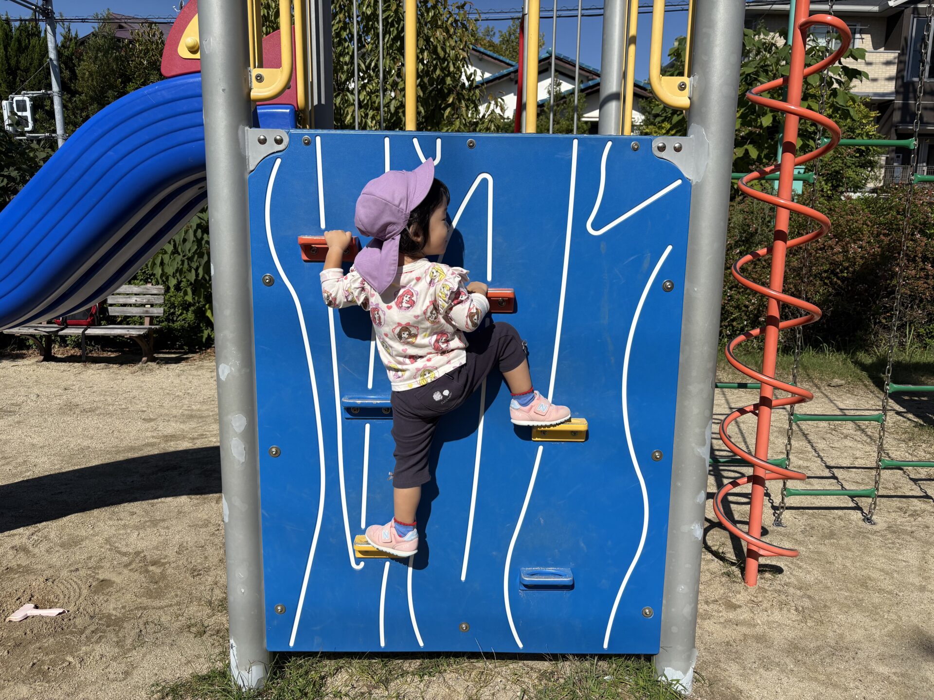 階段だけでなく、ロッククライミングに挑戦するお友だちもいますよ!