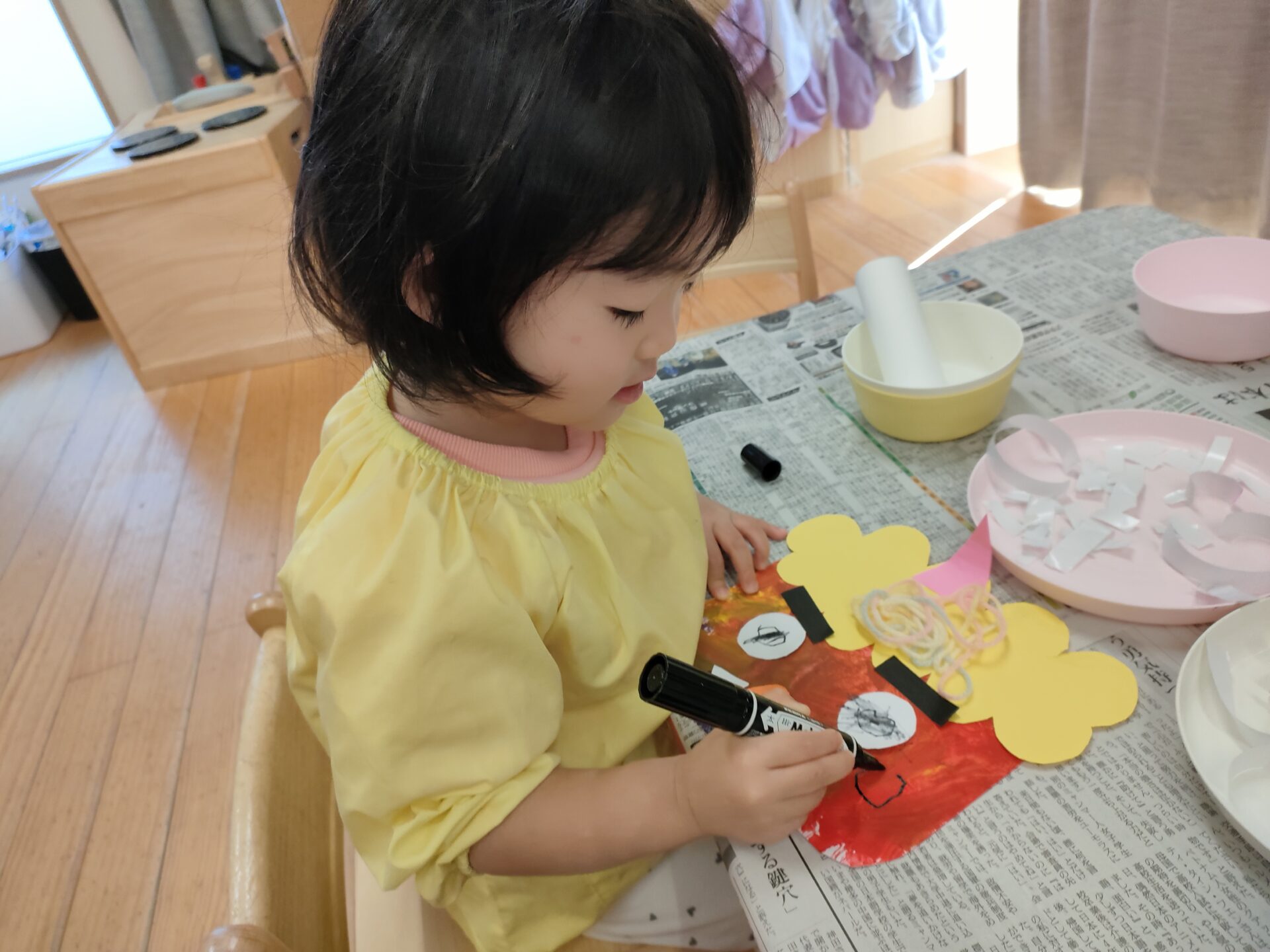 ツノの数や色も迷わずに決め、集中して取り組んでいました。