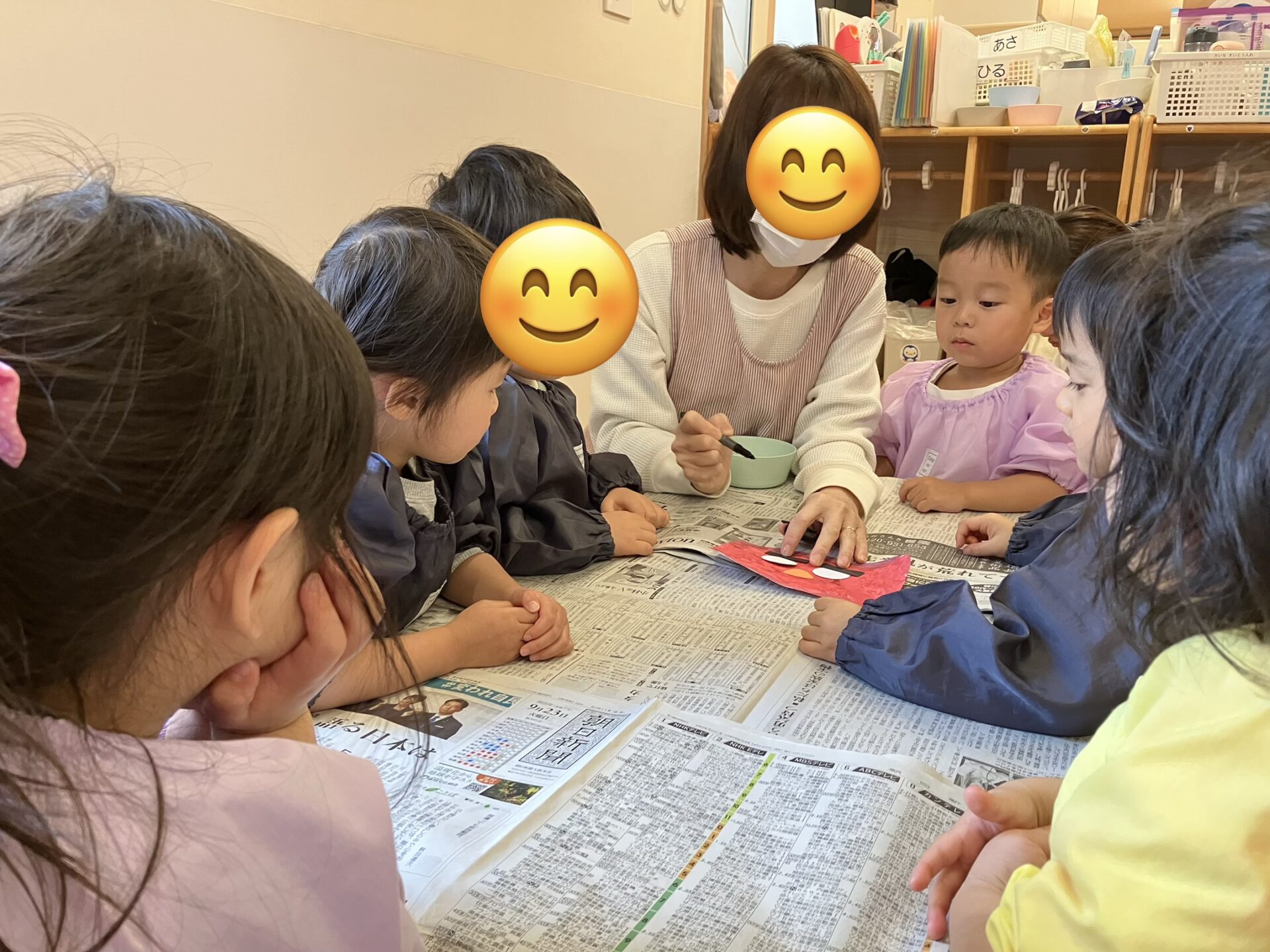 完成したお面を被って、節分の行事を楽しみたいと思います😊