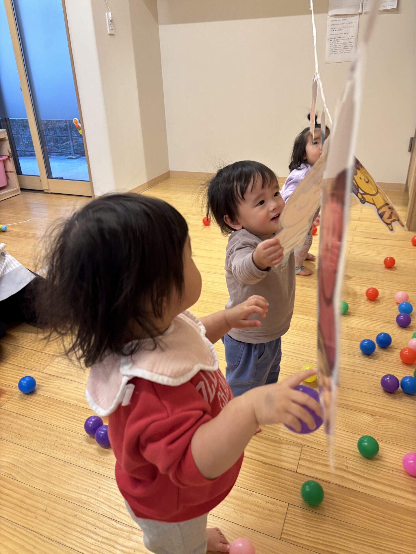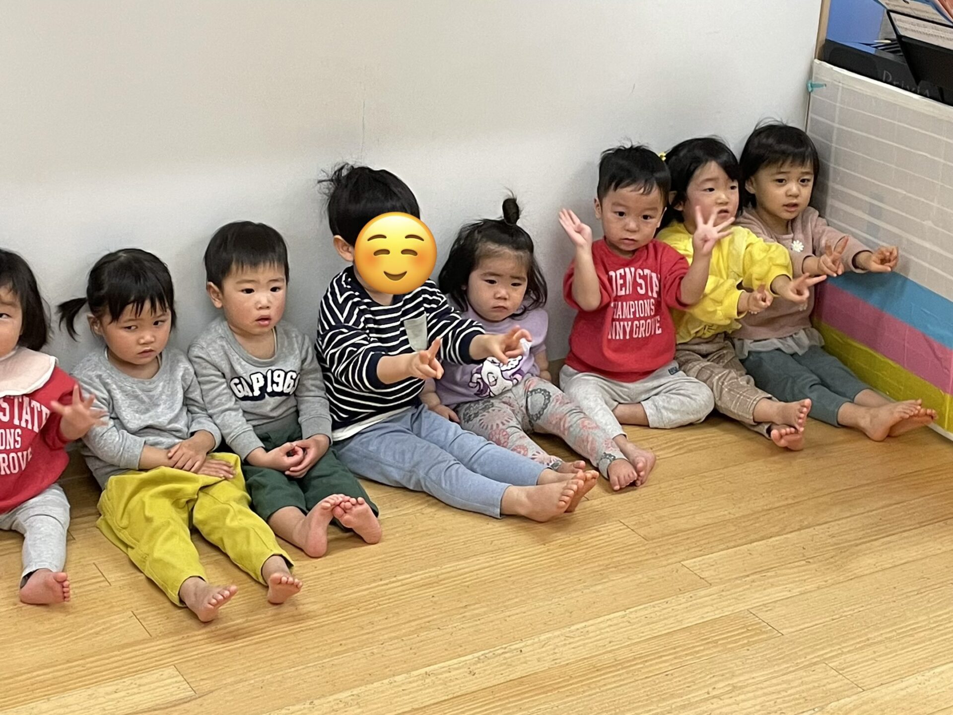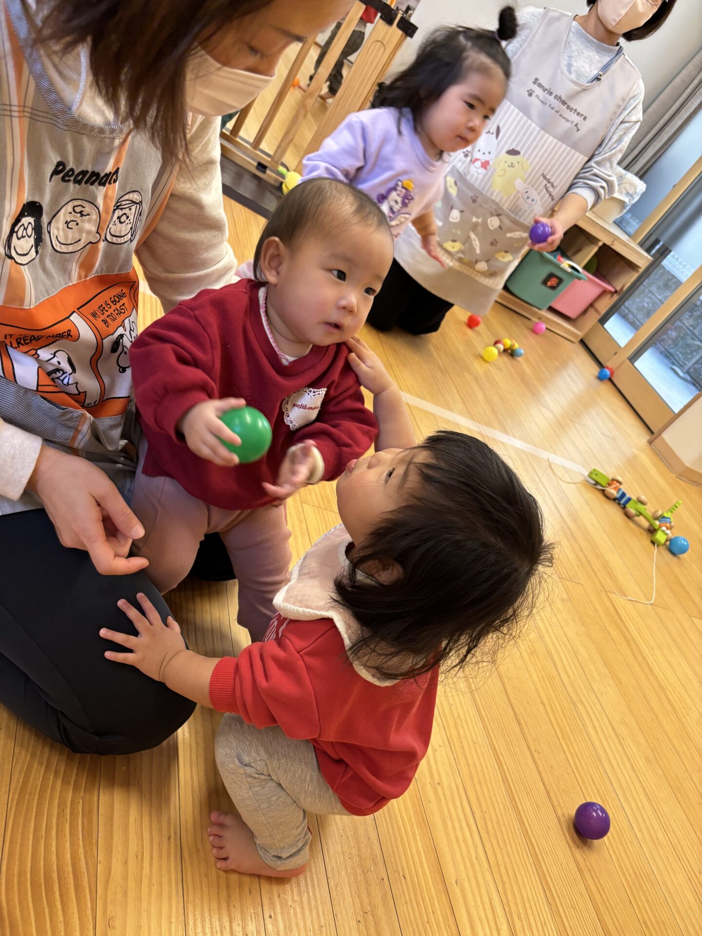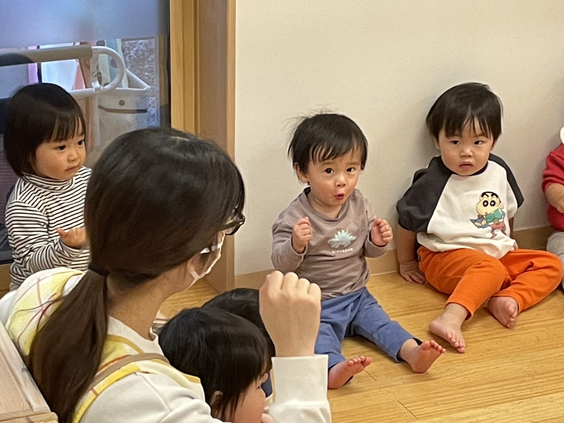 高月齢のお友達が、低月齢のお友達に「一緒にしよー?」と誘っているようですね☺️
