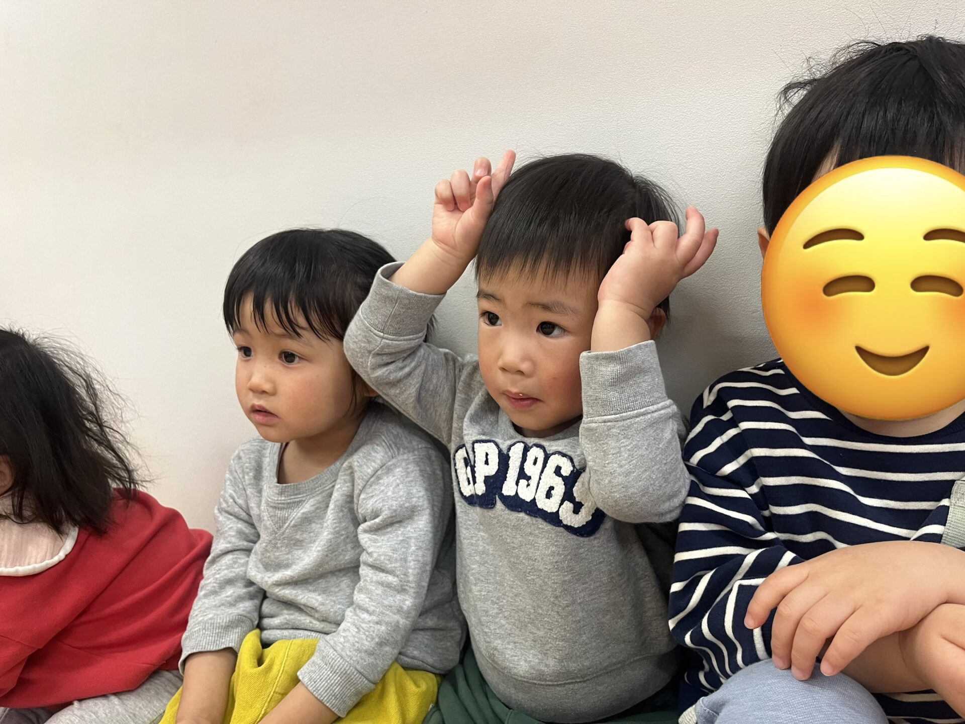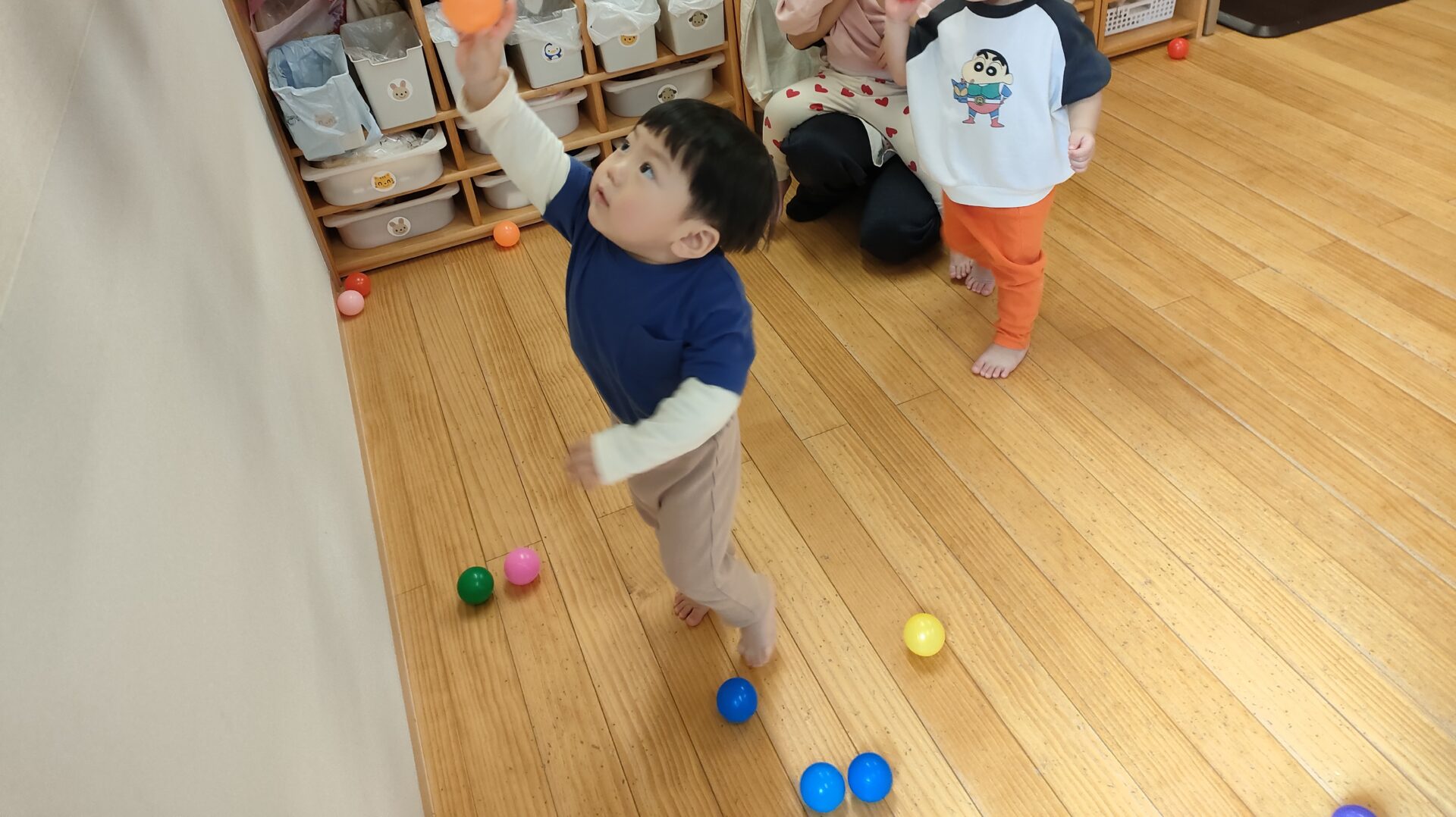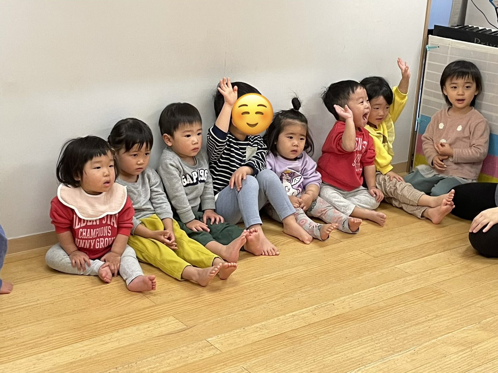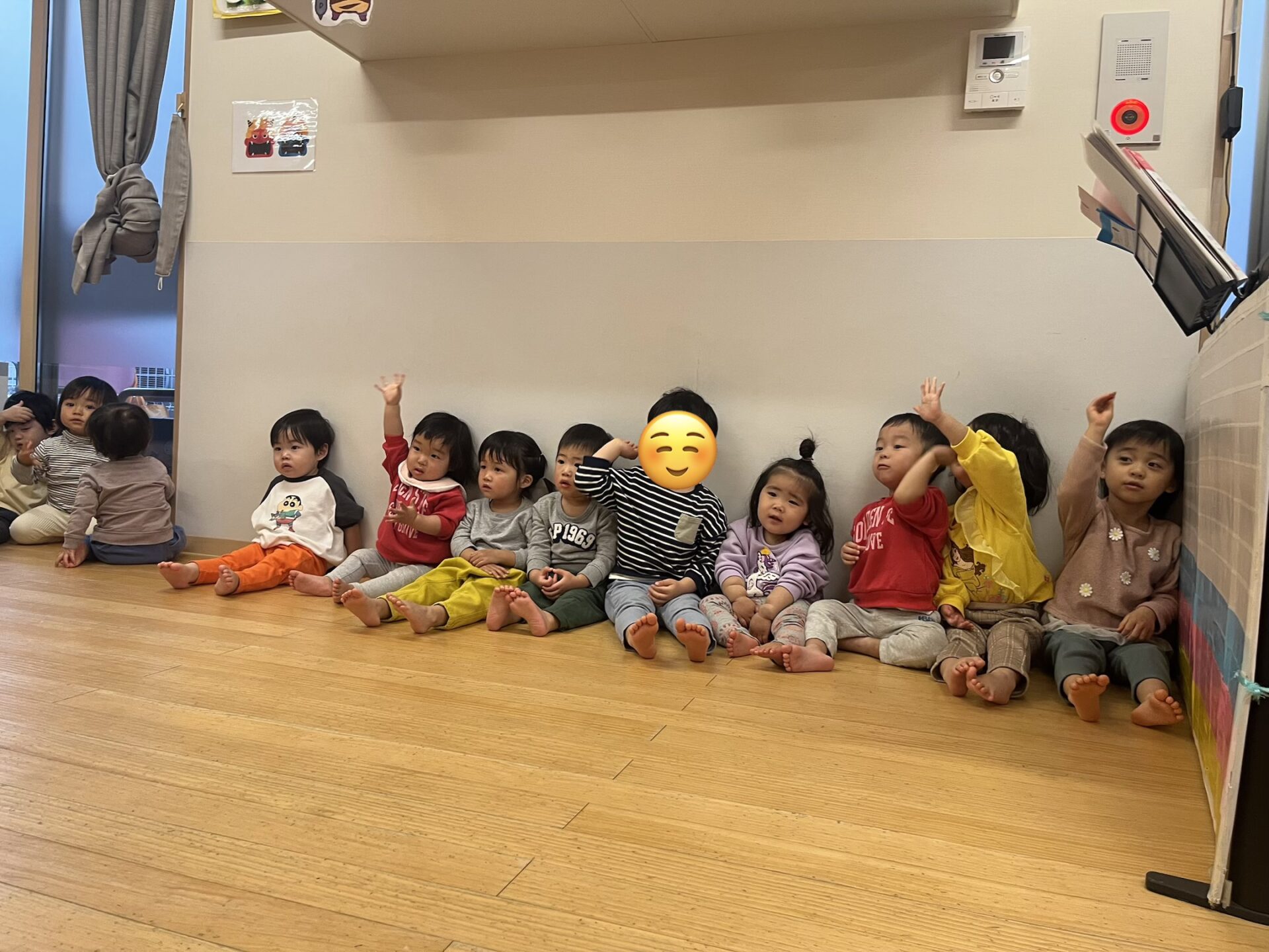 高月齢のお友達が、低月齢のお友達に「一緒にしよー?」と誘っているようですね☺️