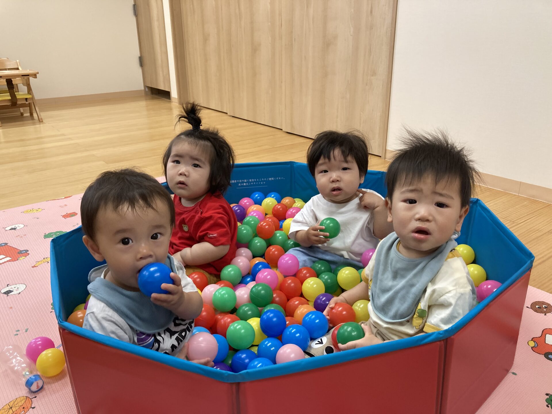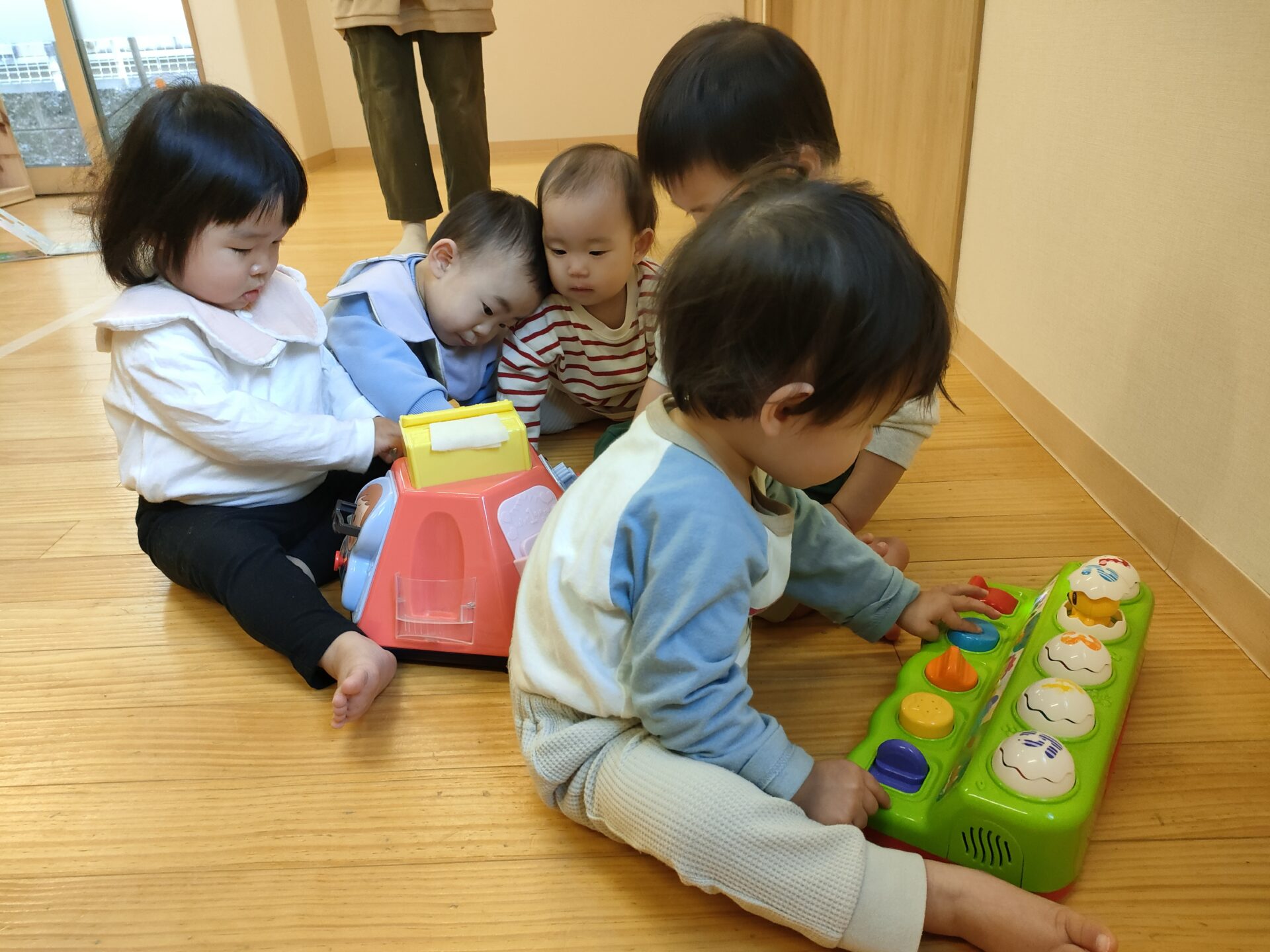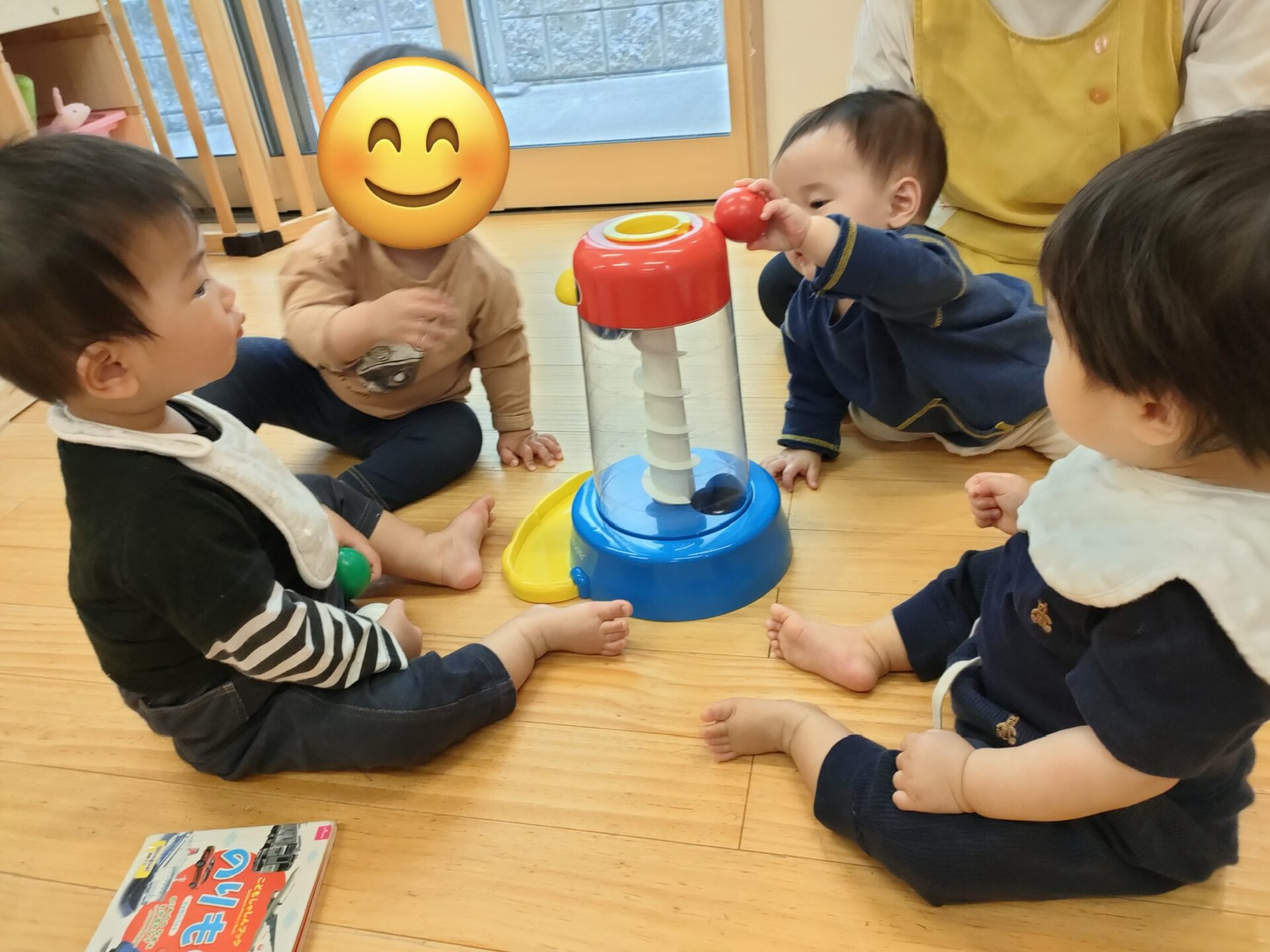 低月齢児さんも、お友だちと一緒に遊ぶ事が大好きで、模倣をしたり、一緒に遊ぼうと近づいたり
