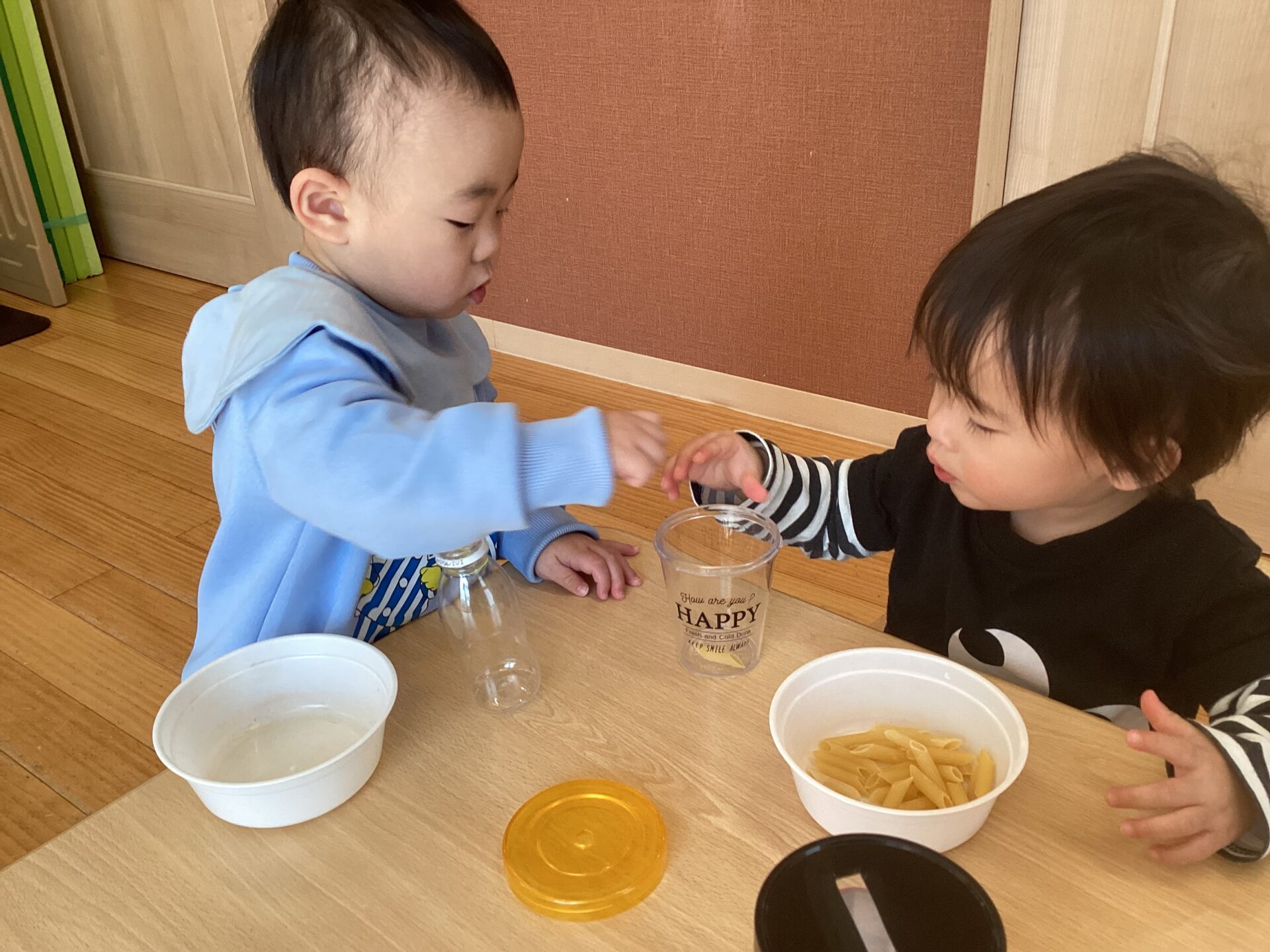 初めは保育者との関わりを楽しんでいた子ども達も、日に日に、お友だちや異年齢のお友だちと過ごす環境も楽しめるようになりました😊